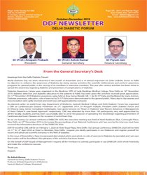 In 1991, a group of doctors from Delhi having special interest in diabetes met together to discuss the cause of growing no. of diabetics in the world particularly in india. Dr. M.P. Aggarwal HOD Diabetes Dept. Safdarjung Hospital, Dr. S.K. Wangnoo Endocrinologist Apollo Hospital, Dr. A.K. Jhingan from State Bank Of India, Dr. Ashok Sharma from Escorts Heart Institute, Dr. V.K. Gujral Diabetologist National Heart Institute, Dr. B.M. Makkar, Dr. Rajiv Gupta practicing diabetes in different areas of Delhi. Shri Sunil Mehra now in Eli Lilly Co. was instrumental in bringing these doctors together, formed Delhi Diabetic Forum, (DDF) and decided to make the abdominal organ pancreas its logo.