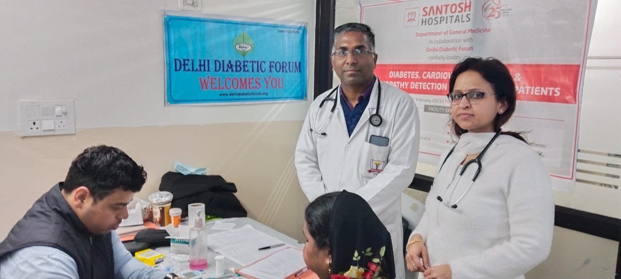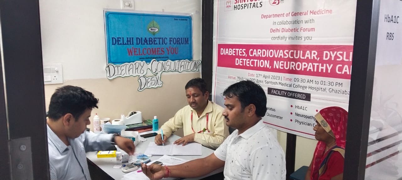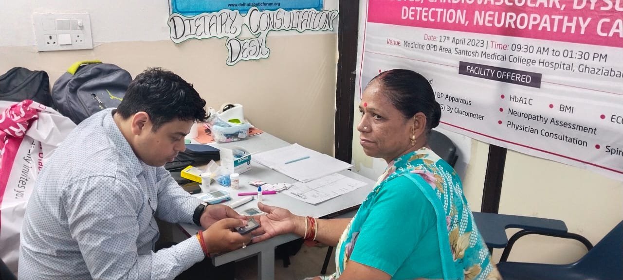GLIMPSES OF DIABETES, CARDIOVASCULAR AND DYSLIPIDEMIA, NEUROPATHY DETECTION CAMPHELD ON 17th APRIL, 2023AT SANTOSH MEDICAL COLLEGE, GHAZIABAD