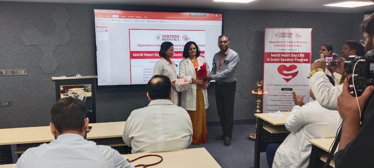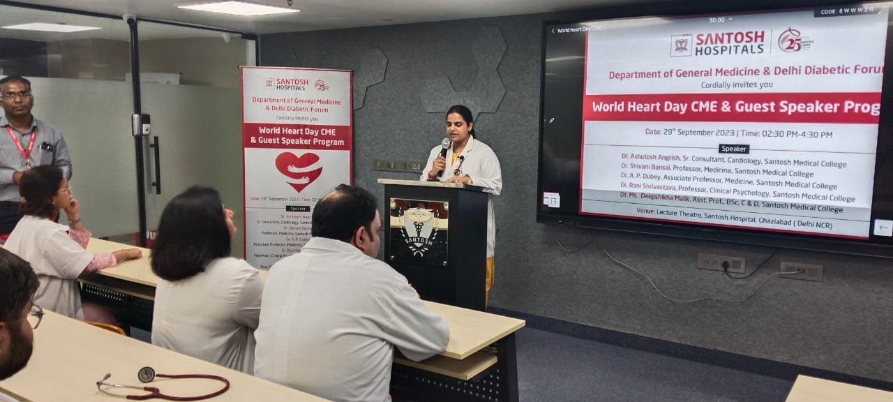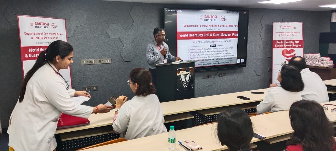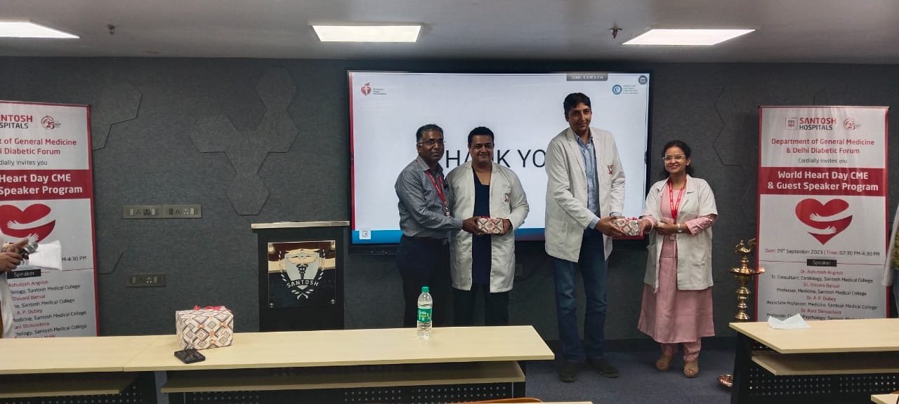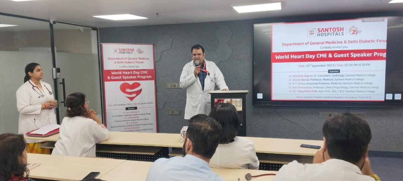 GLIMPSES OF WORLD HEART DAY CME & GUEST SPEAKER PROGRAMHELD ON 29th SEPTEMBER, 2023AT SANTOSH MEDICAL COLLEGE, GHAZIABAD