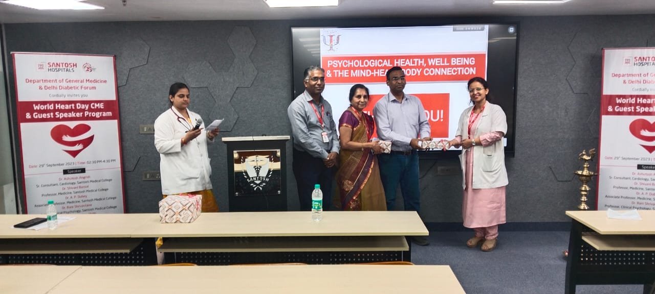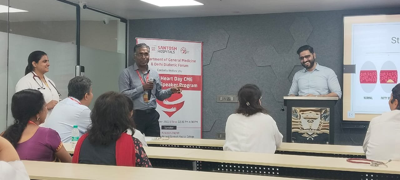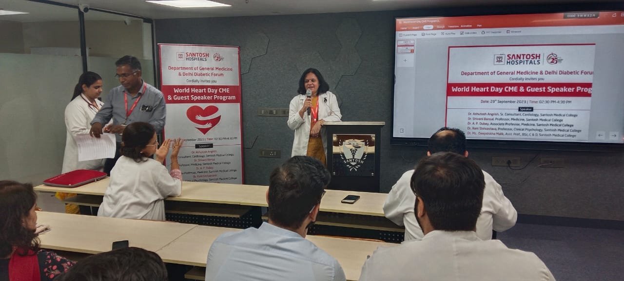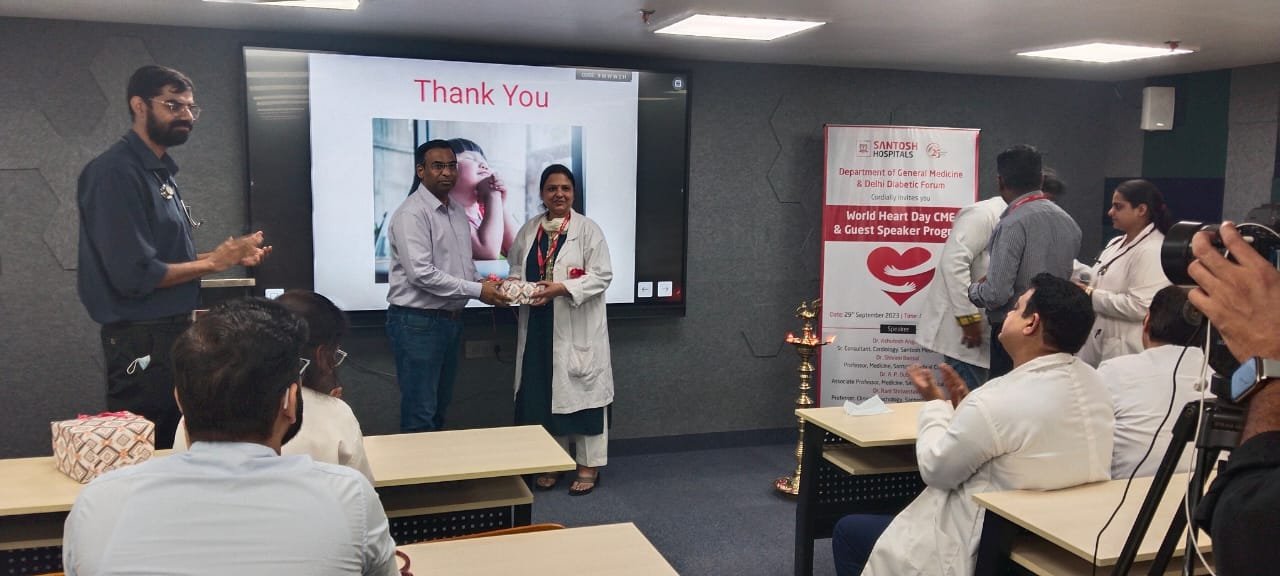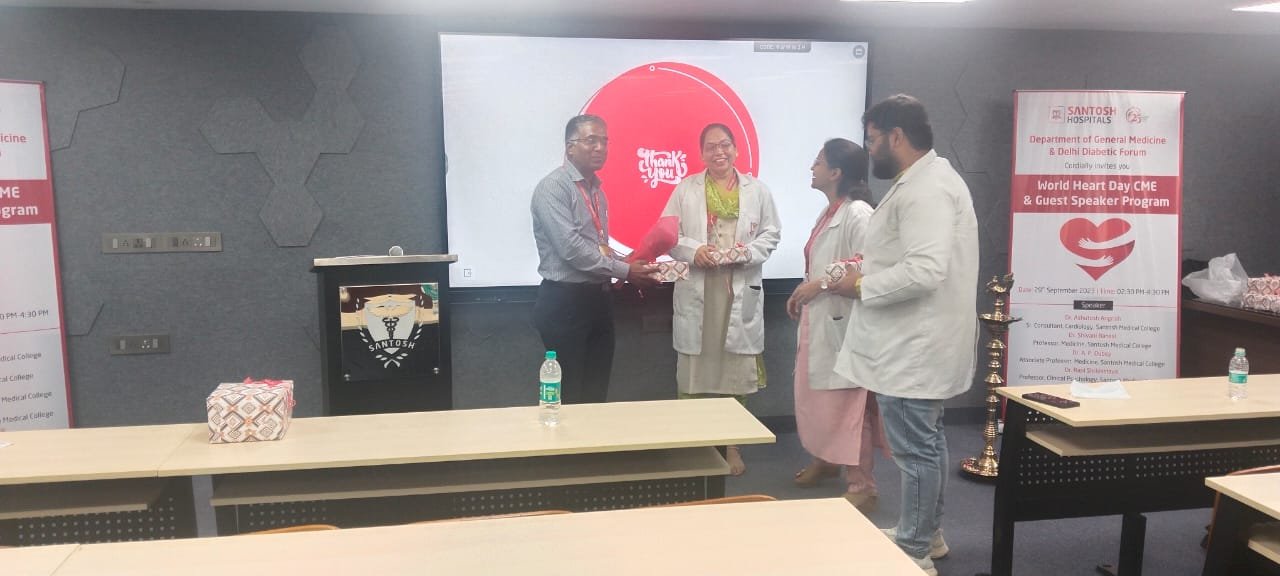 GLIMPSES OF WORLD HEART DAY CME & GUEST SPEAKER PROGRAMHELD ON 29th SEPTEMBER, 2023AT SANTOSH MEDICAL COLLEGE, GHAZIABAD